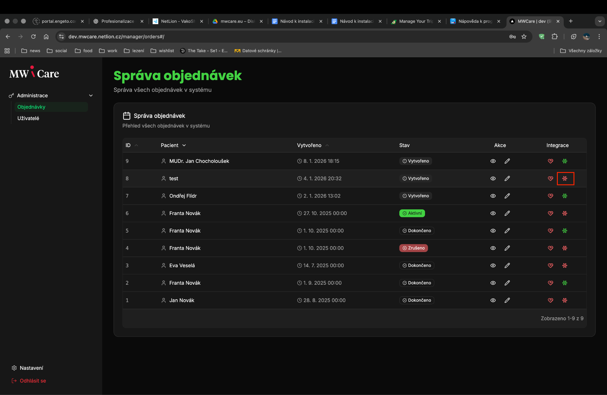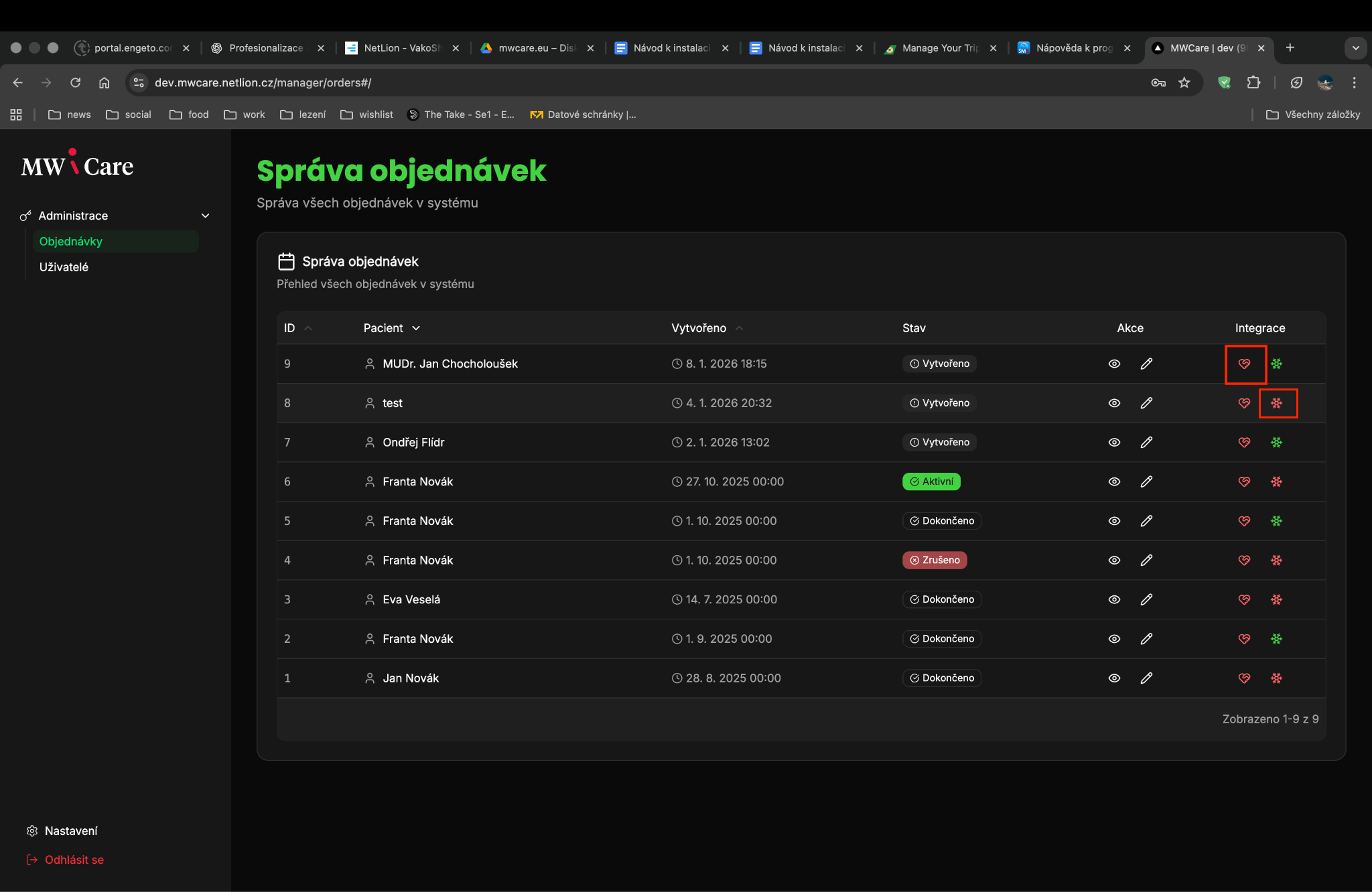 • Pacient zde vidí všechna svá měření a přehled objednávek