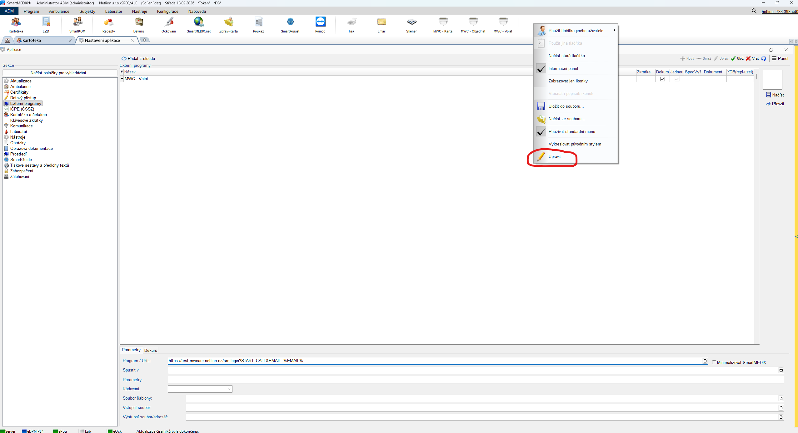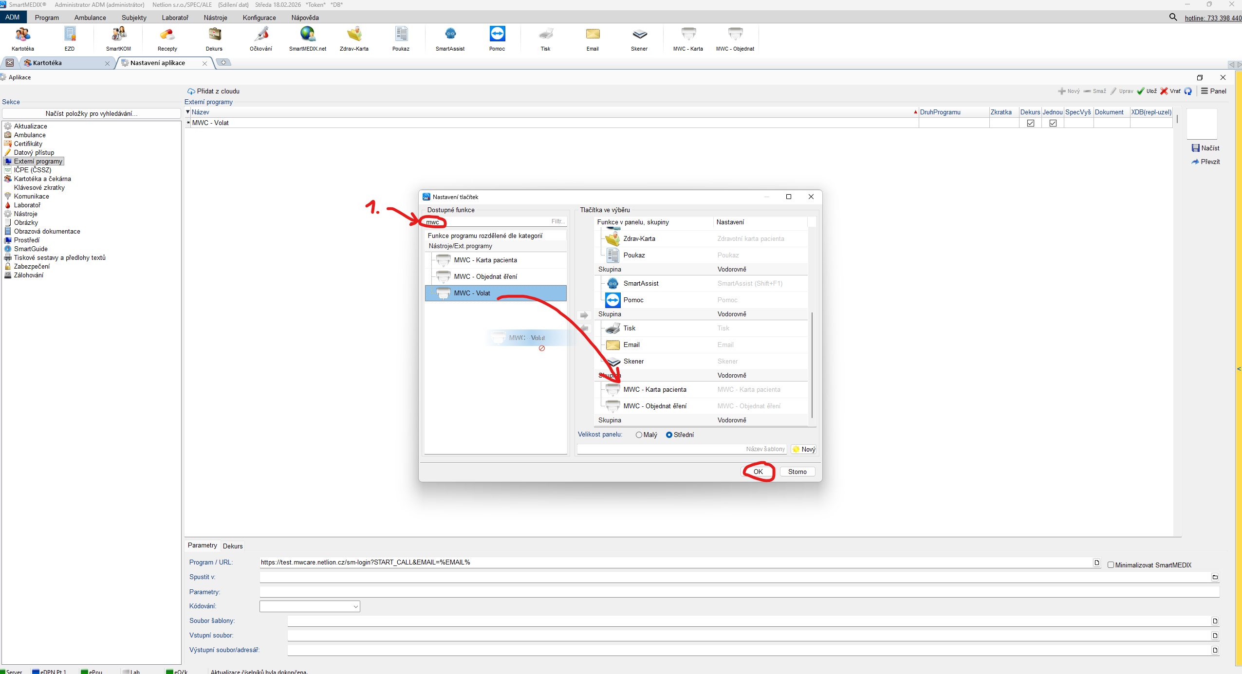 4. Přidejte nový externí program MWC karta pacienta